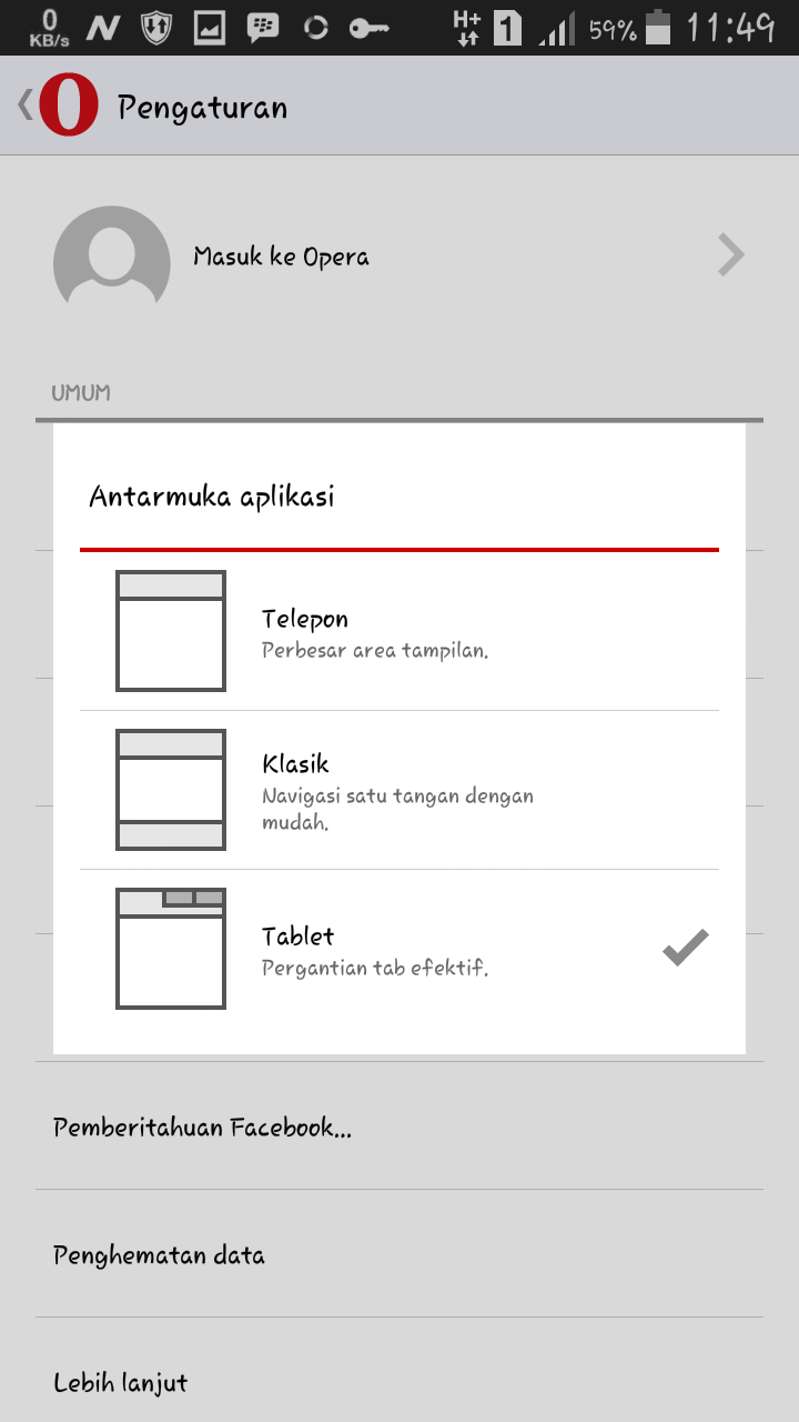 Untuk kali ini saya akan membagikan Opera Mini v11.0.1912.95711. (panjag bangett :v ) Opera Mini v11.0.1912.95711 ini mempunyai tampilan yang lebih memukau dan elegan dibanding Opera Mini versi lama, selain itu kita juga bisa mengubah antarmuka aplikasi menjadi lebih keren dengan tiga mode pilihan yaitu, Antarmuka Telepon, Antarmuka Klasik, Antarmuka Tablet, dengan adanya vitur ini kita jadi lebih leluasa untuk merubah tampila pada opera mini kita.