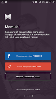 Anda juga bisa login ke Aplikasi MusicMatch menggunakan account facebook anda atau Google+ dan dengan aplikasi musicmacth bisa secara otomatis menampilkan lirik lagu walau kita tidak menggunakan aplikasi musicmacth untuk memutar music atau anda sedang memutar music menggunakan aplikasi music bawaan android anda.
